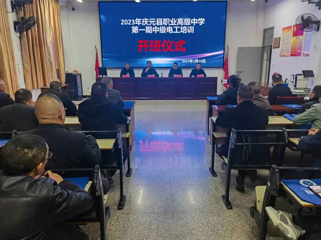 2月19日晚,2023年首期中級(jí)電工社會(huì)培訓(xùn)班開(kāi)班儀式在慶元縣職業(yè)高級(jí)中學(xué)階梯教室舉行。慶元縣職業(yè)高級(jí)中學(xué)黨總支書(shū)記范壽鵬、慶元縣人力資源和社會(huì)保障局人才開(kāi)發(fā)管理科科長(zhǎng)陳沖及信息中心副主任練正健、慶元縣就業(yè)管理服務(wù)處主任吳君衛(wèi)及副主任吳菁華參加會(huì)議,會(huì)議由實(shí)習(xí)就業(yè)處主任吳廣貴主持。本期培訓(xùn)學(xué)員來(lái)自縣內(nèi)各企業(yè)的電工從業(yè)人員。
