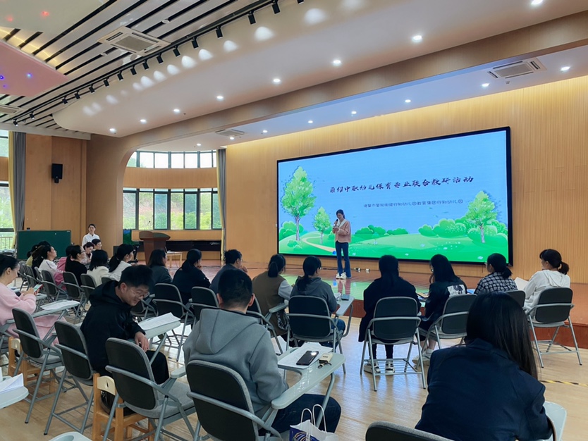會議的第二個議程是由紹興幼兒保育教研大組長趙曼老師向大家介紹了諸暨市幼兒保育專業(yè)建設(shè)的情況。重點介紹了在教師技能賽項、學(xué)生高考等方面的情況。