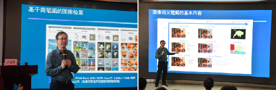 隨著移動(dòng)終端、互聯(lián)網(wǎng)、傳感器網(wǎng)、車聯(lián)網(wǎng)、穿戴設(shè)備等的興起,計(jì)算機(jī)與感知已廣泛滲透,與人類密切聯(lián)系。人類正從傳統(tǒng)以“物理世界—人類世界”為主的二元空間逐步進(jìn)入了“信息空間—物理世界—人類社會(huì)”所構(gòu)成的三元空間。盧教授以“工業(yè)革命的發(fā)展史”為切入點(diǎn),將自動(dòng)化和智能化的區(qū)別作為問題驅(qū)動(dòng),從互聯(lián)網(wǎng)和生活兩個(gè)角度,深入淺出地分析了前沿科學(xué)理論與生活實(shí)際的聯(lián)結(jié)工作,貫穿圖像和視頻,詳細(xì)介紹了圖像檢索技術(shù)、拍照購物搜索、停車自動(dòng)收費(fèi)系統(tǒng)、無人駕駛技術(shù)、虛實(shí)廣告植入、機(jī)器人服務(wù)等前沿科技,使得同學(xué)們對(duì)智能圖像技術(shù)有了更直觀的體會(huì)和深入的了解,給臨平職高學(xué)子帶來了一場(chǎng)別開生面的科學(xué)盛宴。