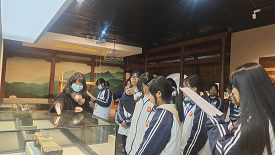 講解員全開慧帶領(lǐng)同學(xué)們參觀慶元廊橋博物館,她以明橋介紹為引,講述了廊橋的發(fā)展歷程以及其他相關(guān)內(nèi)容。慶元人民因地制宜,逢山開路,遇水搭橋,塑造了“廊橋之鄉(xiāng)”獨(dú)具地域特色的人文精神和文化秉性。這些屹立千百年的古廊橋建筑,在無聲無息地向世人傳遞著濃郁深厚的文化積淀和勞動(dòng)人民的智慧才干。