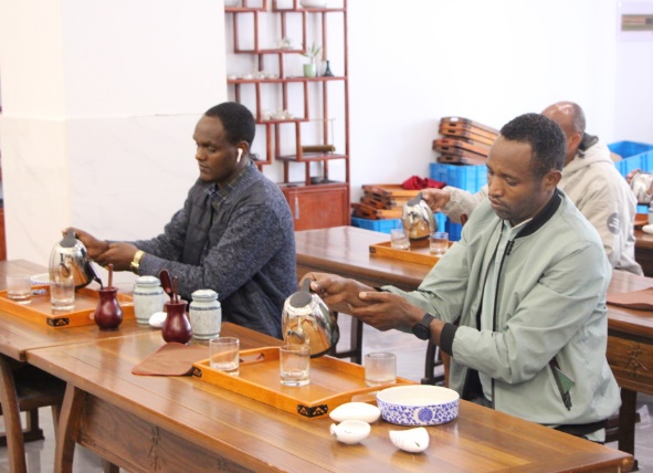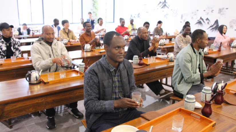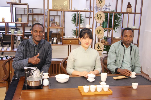 茶專業(yè)教師朱紅一為大家上了一堂開化龍頂茶沖泡體驗(yàn)課。她詳細(xì)介紹了開化龍頂茶的歷史淵源、制作工藝以及品鑒方法,并親自演示了龍頂茶的沖泡過程。留學(xué)生們認(rèn)真聆聽并現(xiàn)場(chǎng)學(xué)習(xí)、體驗(yàn)了開化龍頂?shù)臎_泡技藝。”開化龍頂茶葉在杯中的造型很美麗,聞著特別清香。“聞著茶香,品著新鮮沖泡出的開化龍頂,留學(xué)生們贊不絕口。