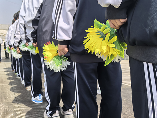 在巍峨的烈士紀(jì)念碑前,全體師生肅立整裝,齊唱《義勇軍進(jìn)行曲》,鏗鏘之聲響徹陵園。隨后,學(xué)生代表向烈士敬獻(xiàn)花圈,全體默哀三分鐘,以無聲的追思致敬英雄忠魂。