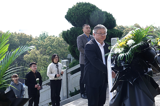 在莊重的音樂聲中,校黨委書記姚雁、校長蔡立柱向烈士紀(jì)念碑敬獻花籃。隨后,全體師生依次走向紀(jì)念碑,獻上手中的鮮花,每一朵鮮花都承載著一份深深的緬懷,寄托著對先烈們的崇敬與感恩之情。