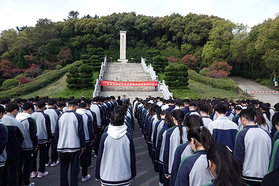 高一28班的努爾比亞?烏曼爾擔(dān)任領(lǐng)誓人,帶領(lǐng)全體學(xué)生莊嚴(yán)宣誓。“我是平湖市職業(yè)中專民族融合部學(xué)生,我莊嚴(yán)宣誓:人民為先,祖國至上;”激昂的誓詞在陵園上空久久回蕩,這不僅是同學(xué)們對先烈們的莊嚴(yán)承諾,更是他們堅定報國之心的有力彰顯。