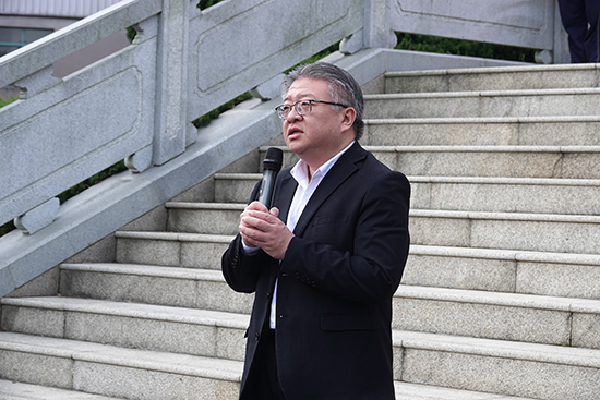 姚雁講話。他深入闡述了革命先烈們?yōu)閲液腿嗣袼龀龅木薮鬆奚c卓越貢獻,強調(diào)了此次祭掃活動對于傳承紅色基因、弘揚愛國主義精神的重要意義。姚雁對同學(xué)們提出了殷切期望,希望大家銘記歷史,從先烈的事跡中汲取力量,在今后的學(xué)習(xí)和生活中,以更加堅定的信念和飽滿的熱情,為實現(xiàn)自己的人生價值和國家的繁榮富強而努力拼搏。