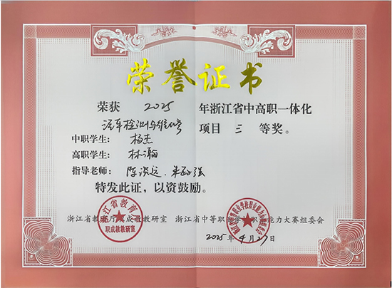 近日,2025年浙江省中等職業(yè)學(xué)校職業(yè)能力大賽(中高職一體化)“汽車(chē)檢測(cè)與維修”賽項(xiàng)圓滿(mǎn)落幕。來(lái)自全省數(shù)十所中高職院校的25支代表隊(duì)同場(chǎng)競(jìng)技,以精湛技藝和默契配合,彰顯中高職一體化育人的扎實(shí)成效。此次比賽,海鹽職業(yè)教育中心與嘉興職業(yè)技術(shù)學(xué)院聯(lián)合組隊(duì),榮獲省三等獎(jiǎng)。