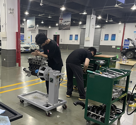 兩校積極構(gòu)建“基礎(chǔ)技能-進(jìn)階診斷-實(shí)戰(zhàn)模擬”三級(jí)訓(xùn)練體系,中職選手主攻發(fā)動(dòng)機(jī)拆裝與基礎(chǔ)技能,高職選手主攻電控系統(tǒng)數(shù)據(jù)流分析與故障解讀排除,選手間相互協(xié)作,技能互補(bǔ)。在備賽過(guò)程中,兩校選手針對(duì)發(fā)動(dòng)機(jī)常見(jiàn)機(jī)械故障以及車(chē)輛電控故障進(jìn)行嚴(yán)格訓(xùn)練,通過(guò)基礎(chǔ)技能強(qiáng)化、理論知識(shí)深化,依托中高職學(xué)校的各自?xún)?yōu)勢(shì),不斷解決訓(xùn)練中遇到的技術(shù)難題,最終實(shí)現(xiàn)專(zhuān)業(yè)能力的質(zhì)變提升。