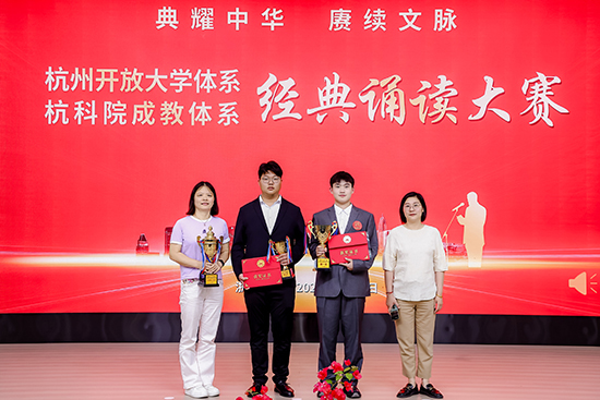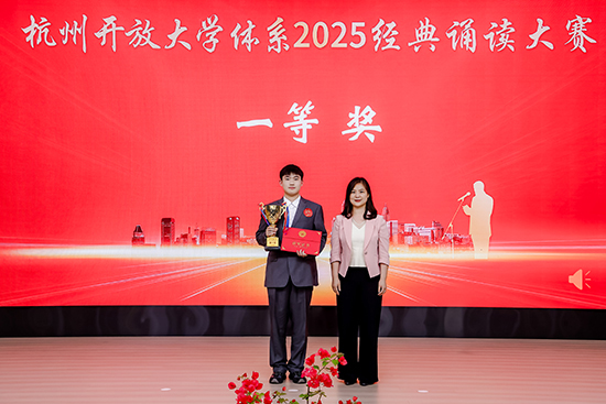 近日,以“典耀中華 賡續(xù)文脈”為主題的杭州開放大學(xué)體系經(jīng)典誦讀大賽在杭州隆重舉行。來自全市開放大學(xué)體系的眾多選手同臺競技,以聲傳情、以誦抒懷,展現(xiàn)中華經(jīng)典文化的永恒魅力。經(jīng)過激烈角逐,浙江開放大學(xué)臨平學(xué)院脫產(chǎn)班24電商吳昊澤同學(xué)憑借出色的表現(xiàn)脫穎而出,榮獲大賽一等獎第一名;22秋學(xué)前開放教育本科張學(xué)楠獲第四名;脫產(chǎn)班25電商趙俊杰獲得第五名的好成績;我院步紅梅老師獲得該賽項(xiàng)唯一一個(gè)優(yōu)秀指導(dǎo)老師獎,師生攜手為學(xué)校贏得了榮譽(yù)。