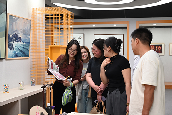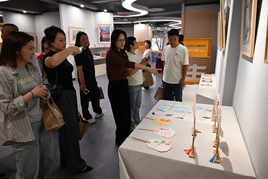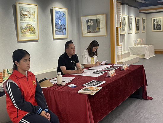 暢游之前,領(lǐng)導(dǎo)及來(lái)賓們對(duì)藝術(shù)類“未來(lái)AI課堂”海報(bào)設(shè)計(jì)、“未來(lái)生活”場(chǎng)景設(shè)計(jì)兩大賽事的決賽作品進(jìn)行了現(xiàn)場(chǎng)票選。