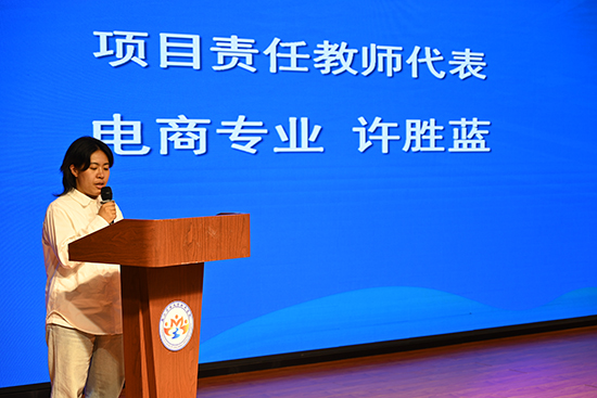 外貿(mào)比賽項(xiàng)目責(zé)任教師許勝藍(lán)老師作為教師代表發(fā)言。她表示,所有競(jìng)賽項(xiàng)目將秉持公平、公正、公開的原則,確保評(píng)價(jià)的客觀性,也希望同學(xué)們銘記競(jìng)賽的意義在于過(guò)程中的沉淀與突破,AI時(shí)代不僅需要技術(shù)嫻熟者,還需要敢于試錯(cuò)、善于反思的開拓者!