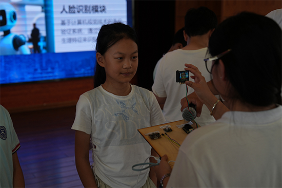 隨后,沈亞東老師及創(chuàng)客團(tuán)隊的同學(xué)們帶著智能測溫臺(利用語音合成技術(shù))、智能自動窗(語音識別、語音合成技術(shù))、AI智能測油溫機(jī)(利用語音合成及圖像識別技術(shù))、“甲烷生成的新篇章”(圖像識別、語音識別、語音合成)等智能小發(fā)明,讓孩子們親身參與體驗科技帶來的樂趣,孩子們躍躍欲試,驚訝地表示:哇!這個機(jī)器居然聽得懂我的指令哦!太神奇了!孩子們眼睛里閃爍著好奇與興奮的光芒。