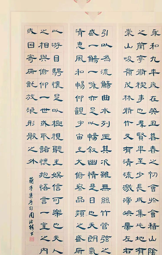 新學(xué)期伊始,書法班章高鈞老師宣布本學(xué)期我們將學(xué)寫王羲之《蘭亭序》時(shí),教室里頓時(shí)響起一片驚嘆。老學(xué)員們聽聞后很開心,有一種迫切想提筆書寫的心情。但像我們這種連毛筆都還沒摸穩(wěn)的“菜鳥”也能上手學(xué)寫《蘭亭序》嗎? “能”。章老師給出了肯定的答復(fù),“蘭亭序是書法學(xué)習(xí)者的必修范本,這學(xué)期大家一起慢慢寫,會(huì)寫的、不會(huì)寫的,都一個(gè)字一個(gè)字認(rèn)真地學(xué)”。