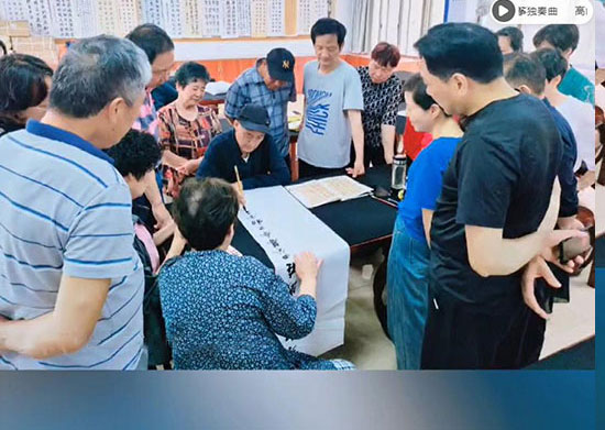 每周三上午的書法課成了大家最期待的時(shí)光。學(xué)員們都會(huì)早早來到學(xué)校,交作業(yè)、討論筆法、相約購(gòu)買新的紙和筆……,教室里洋溢著一種年輕人難以企及的專注與歡樂。為了臨摹好一張作業(yè),有人寫三米長(zhǎng)的卷,有人廢寢忘食地練習(xí),有人甚至半夜起身揮毫……,班長(zhǎng)大老虎說:“我們不是在和古人比書法,而是在學(xué)習(xí)如何與時(shí)間相處。”在學(xué)員們用心書寫的筆觸里,是王羲之筆下“快然自足,不知老之將至”的灑脫精神。