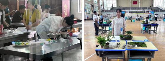 學(xué)校選手正在進(jìn)行創(chuàng)意餃子(左)及微景觀設(shè)計(jì)(右)賽項(xiàng)