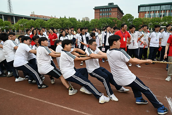 助力活動(dòng)的尾聲,一場(chǎng)別開生面的拔河比賽點(diǎn)燃全場(chǎng)。高三各班摩拳擦掌,哨聲響起的瞬間,雙方隊(duì)員緊握長(zhǎng)繩,憋紅了臉向后傾倒。“加油!加油!”吶喊聲、跺腳聲匯聚成青春的交響樂(lè),班主任們?cè)谂曰?ldquo;戰(zhàn)術(shù)指導(dǎo)”,揮舞著手臂指揮節(jié)奏。每一次拉動(dòng)都是對(duì)團(tuán)隊(duì)凝聚力的考驗(yàn),正如高考戰(zhàn)場(chǎng)上,唯有團(tuán)結(jié)協(xié)作、全力以赴,才能突破重圍。當(dāng)最后一聲哨響落下,會(huì)計(jì)229班的同學(xué)們贏得了最終勝利,他們歡呼、擁抱,汗水與笑容交織的畫面注定會(huì)成為這個(gè)夏天最動(dòng)人的注腳。