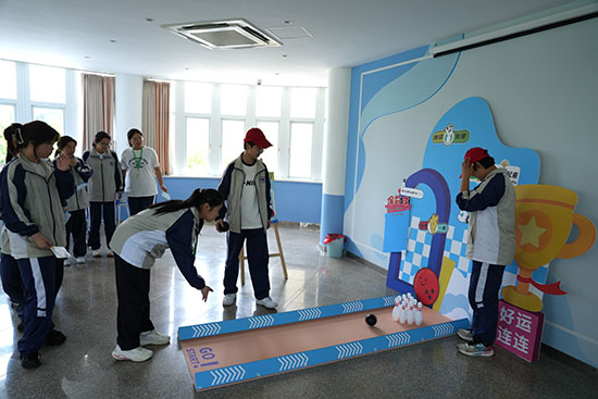 本次游園會(huì)設(shè)置了六大特色體驗(yàn)區(qū)。在“微笑驛站”,同學(xué)們?cè)谂恼湛蚯岸ǜ袂啻盒δ槪?ldquo;煩惱保齡球”區(qū)域,擊倒標(biāo)有“考試焦慮”“人際困擾”的球瓶,幫助釋放壓力;“積極能量瓶”制作區(qū),學(xué)生們專注創(chuàng)作勵(lì)志書(shū)簽,22藝術(shù)設(shè)計(jì)1蔡珂珂表示:“這個(gè)書(shū)簽會(huì)時(shí)刻提醒我保持積極心態(tài)。”