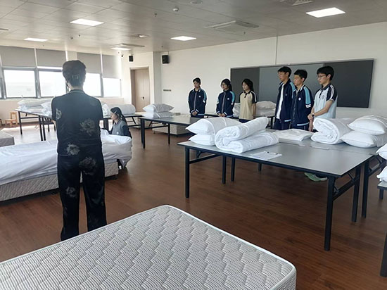 自得知大賽消息起,該校胡可凡同學(xué)便迅速投入到緊張的訓(xùn)練當(dāng)中。林建丹、徐宋玲兩位指導(dǎo)老師為該生制定了一套科學(xué)的訓(xùn)練計(jì)劃。針對(duì)綜合知識(shí)理論考核,該生每日花費(fèi)大量時(shí)間進(jìn)行知識(shí)點(diǎn)的梳理與記憶,通過(guò)不斷刷題來(lái)提升自己的解題能力和分析能力。為了提高英語(yǔ)水平,堅(jiān)持每日練習(xí)口語(yǔ),模仿標(biāo)準(zhǔn)發(fā)音,與老師和同學(xué)進(jìn)行英語(yǔ)對(duì)話(huà)練習(xí),積累了豐富的口語(yǔ)表達(dá)素材。現(xiàn)場(chǎng)操作訓(xùn)練中式鋪床環(huán)節(jié),她每天反復(fù)練習(xí)無(wú)數(shù)次,從床單的平整鋪設(shè)到被角的折疊,每一個(gè)動(dòng)作都力求做到精準(zhǔn)、規(guī)范、迅速。無(wú)數(shù)個(gè)日夜的努力,只為在賽場(chǎng)上展現(xiàn)出最佳狀態(tài)。
