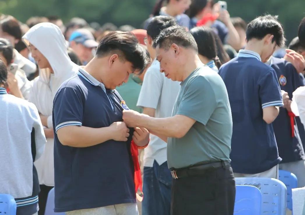 副校長將“決勝高考”的大旗授予高三年級教務主任樓迪老師接旗獵獵作響的旗幟,宛如燃燒的火焰點燃了每一個人的斗志。全體學子高舉右拳,誓言如雷。隨著激昂的《少年中國說》響起,全體師生再次跨越成人門邁向充滿無限可能的新征程。