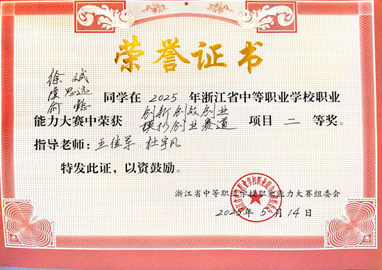 近日,2025年浙江省中等職業(yè)學(xué)校職業(yè)能力大賽“創(chuàng)新創(chuàng)效創(chuàng)業(yè)”模擬創(chuàng)業(yè)賽道圓滿收官。來(lái)自全省的40支參賽隊(duì)伍同場(chǎng)競(jìng)技,經(jīng)過(guò)4小時(shí)激烈角逐,海鹽職業(yè)教育中心參賽團(tuán)隊(duì)22機(jī)電徐斌、23機(jī)器人虞思遠(yuǎn)、23物流俞懿,憑借扎實(shí)的專(zhuān)業(yè)功底在比賽中脫穎而出,勇奪省二等獎(jiǎng)。
