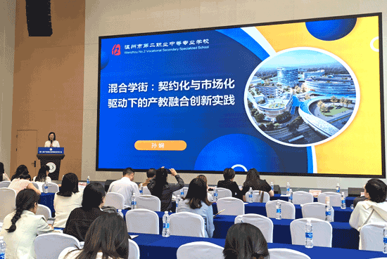 近日,在第八屆產(chǎn)教融合課程建設(shè)研討會上,溫州市第二職業(yè)中等專業(yè)學(xué)校作為全國唯一受邀中職學(xué)校代表,由社會服務(wù)處主任孫嫻老師以《混合學(xué)街:契約化與市場化驅(qū)動下的產(chǎn)教融合創(chuàng)新實踐》為題,分享了學(xué)校在產(chǎn)教融合領(lǐng)域的突破性探索,引發(fā)與會專家高度關(guān)注。