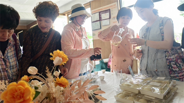 隨后,學(xué)員們來(lái)到了泗安鎮(zhèn)師姑崗村“拾愛(ài)玫瑰基地”。馥郁的玫瑰香氣撲面而來(lái),學(xué)員們?cè)诠ぷ魅藛T的指導(dǎo)下,動(dòng)手體驗(yàn)鮮花餅制作。從采摘花瓣到揉制餅皮,每一個(gè)環(huán)節(jié)都充滿(mǎn)樂(lè)趣,大家深刻感受到玫瑰產(chǎn)業(yè)與食品加工融合發(fā)展的獨(dú)特魅力。