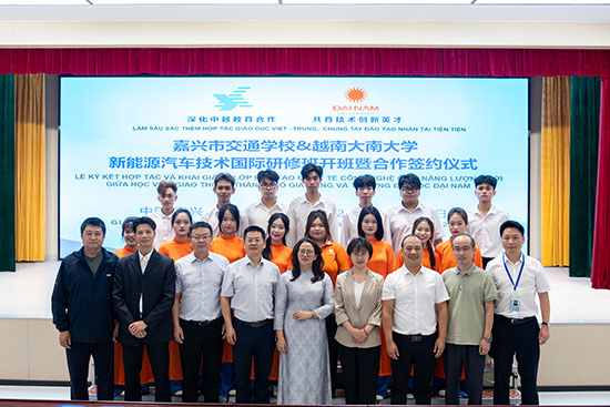 作為國(guó)家級(jí)重點(diǎn)中等職業(yè)學(xué)校,嘉興市交通學(xué)校積極響應(yīng)“一帶一路”倡議號(hào)召,于今年3月與越南大南大學(xué)簽署《合作備忘錄》,在學(xué)術(shù)交流、師生互訪等達(dá)成深度合作意向。此次新能源汽車技術(shù)國(guó)際研修班是兩校合作的首個(gè)落地項(xiàng)目,標(biāo)志著雙方從戰(zhàn)略共識(shí)邁向?qū)嵸|(zhì)性推進(jìn)階段。越南大南大學(xué)精心選派15名學(xué)生,不遠(yuǎn)萬(wàn)里來(lái)到嘉興市交通學(xué)校,參加為期15天的短期培訓(xùn)。培訓(xùn)內(nèi)容豐富多元,不僅涵蓋新能源汽車動(dòng)力系統(tǒng)原理、電池安全技術(shù)、故障診斷實(shí)操等核心課程,還融入中文基礎(chǔ)教學(xué)與文化體驗(yàn)活動(dòng),致力于培養(yǎng)兼具“專業(yè)技術(shù)+語(yǔ)言能力”的復(fù)合型人才。