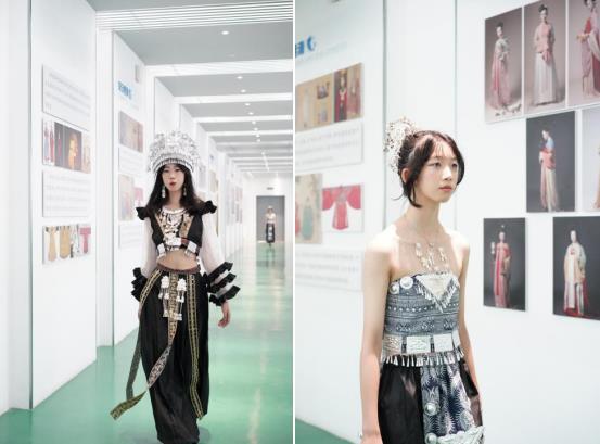 畢業(yè)設(shè)計(jì)秀共展出禮服、苗族服飾、黑色系列、藍(lán)色系列、田園風(fēng)格、民國風(fēng)情等六個(gè)系列的作品。一組組別具一格的靈動(dòng)設(shè)計(jì)驚艷全場(chǎng)人的目光:禮服以綢緞、蕾絲等高端面料為主體,搭配了珠繡、燙金等復(fù)雜工藝;苗族服飾的銀冠、項(xiàng)圈等銀飾璀璨奪目,百鳥、蝴蝶等刺繡紋樣精美;黑色系列展現(xiàn)出皮革、綢緞、針織等不同材質(zhì)與金屬裝飾、極簡(jiǎn)剪裁的碰撞;藍(lán)色系列融合輕紗、荷葉邊等多種元素,采用褶皺、百褶裙等設(shè)計(jì),演繹出優(yōu)雅神秘、清新隨性的風(fēng)格……校長(zhǎng)張義軍表示:“這些作品不僅是同學(xué)們技能的展示,更是年輕一代對(duì)文化傳承與時(shí)代發(fā)展的深度思考。”
