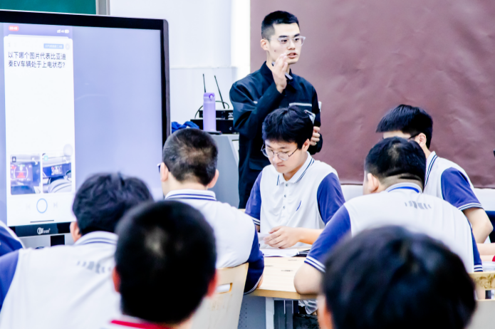 活動伊始,兩節(jié)優(yōu)質課堂率先“登場”。兩位主講人從入選任務中截取部分教學環(huán)節(jié)進行課堂展示,其余人員旁聽。長興技師學院電子商務專業(yè)教師朱丹從“長興紫筍茶網店商品發(fā)布與維護”學習任務中選取部分教學內容授課,學生在“關鍵詞尋寶”互動中,掌握了淘寶商品標題撰寫的核心要領。湖州交通技師學院新能源汽車檢測與維修專業(yè)教師范怡鋒提取了“吉利帝豪EV300動力蓄電池故障檢修”學習任務六個環(huán)節(jié)的關鍵部分進行展示,學生化身“汽車醫(yī)生”排查故障,更借助DeepSeek、可識讀手牌、豆包智能體等數字化手段加強了課堂的科技感。