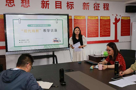 向敏老師以《中國(guó)現(xiàn)代文學(xué)專(zhuān)題研究》課程中的“現(xiàn)代戲劇”為說(shuō)課內(nèi)容。針對(duì)在職學(xué)生學(xué)習(xí)時(shí)間碎片化但學(xué)習(xí)動(dòng)機(jī)明確的特點(diǎn),運(yùn)用案例教學(xué)法、AI輔助學(xué)習(xí)、小組合作法、情境教學(xué)法等,借助線上線下豐富資源,以《雷雨》《茶館》等經(jīng)典劇作為例,通過(guò)理論講授、實(shí)踐演練等環(huán)節(jié),引導(dǎo)學(xué)生感受話劇魅力,提升文學(xué)鑒賞與創(chuàng)作能力。