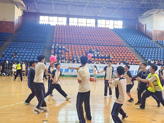 5月21日的學(xué)校體育館成為歡樂的海洋,6個(gè)班級在人際拓展活動中上演了一場場“團(tuán)隊(duì)協(xié)作大挑戰(zhàn)”。“圈動你我”游戲中,呼啦圈在不松手的隊(duì)伍里“翻山越嶺”,24商務(wù)大專班的同學(xué)用眼神和身體弧度傳遞信號,有人笑稱:“原來肢體語言比說話更有默契!”