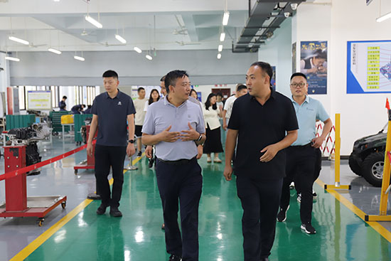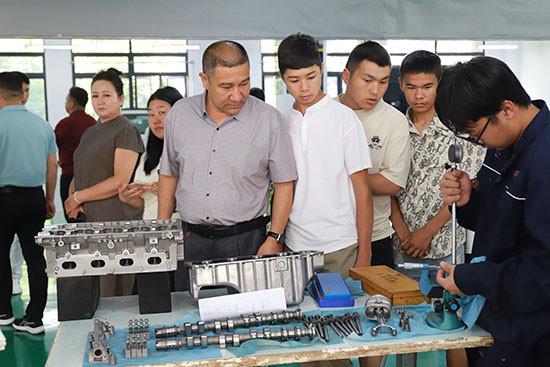 考察團首先實地走訪了學校產教融合實踐基地。在汽修車間,智能化實訓設備與真實企業(yè)場景的無縫銜接令來賓駐足;門業(yè)生產線展示了從設計到成品的全鏈條工藝,凸顯“校中廠”模式特色;模具產學研中心則通過高精度數控設備與師生創(chuàng)新成果,生動詮釋了“產學研用”一體化培養(yǎng)理念。