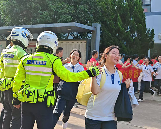 7:40分,在警車的開道護(hù)送下,16輛送考大巴組成車隊緩緩駛出校園,奔赴考場。“老師們用擊掌的方式讓我們放松心情,警車開道更讓我感受到滿滿的儀式感,我一定會全力以赴!”一名高三學(xué)生激動地說。校長吳曉彩表示:“紅色代表喜慶,擊掌傳遞力量,這是我們一貫堅持的送考傳統(tǒng)。”(郭超婷)