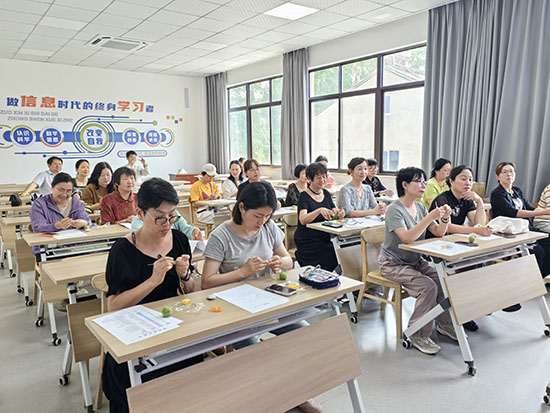 緊接著,鉤織教學(xué)正式開始。李老師從基礎(chǔ)針法入手,耐心細(xì)致地講解每一個(gè)步驟,并進(jìn)行清晰地演示。“大家看,起針的時(shí)候要這樣握住鉤針,用手指輕輕繞線……”李老師一邊講解,一邊靈活地在毛線與鉤針間穿梭。不一會(huì)兒,一個(gè)小巧的粽子雛形便呈現(xiàn)在眾人眼前,贏得臺(tái)下學(xué)員們的陣陣贊嘆。在實(shí)際操作環(huán)節(jié),學(xué)員們紛紛拿起工具,跟著李老師的指導(dǎo)嘗試鉤織。起初,不少人遇到了針法不對(duì)、線纏繞等問題,但大家相互交流、虛心請(qǐng)教,現(xiàn)場(chǎng)學(xué)習(xí)氛圍熱烈融洽。李老師穿梭在學(xué)員中間,手把手糾正動(dòng)作、解答疑問,確保每個(gè)人都能掌握鉤織技巧。此外,新碶成校還為學(xué)員們準(zhǔn)備了詳細(xì)的鉤織資料,涵蓋針法步驟圖、實(shí)用技巧和作品完整教程,方便大家活動(dòng)結(jié)束后繼續(xù)學(xué)習(xí)鞏固。