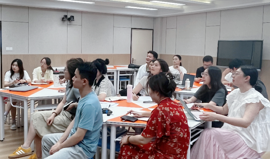 針對“如何選題”這一問題,朱佳穎從“切口、立意、落地”等角度,剖析了優(yōu)秀課題選題的共性特征。她以去年立項的市級課題目錄為例,解析如何從教學(xué)痛點中提煉研究問題。她鼓勵老師們立足課堂實際,挖掘?qū)嵺`創(chuàng)新點,形成自身特色。老師們則結(jié)合自身學(xué)科和專業(yè),圍繞選題方向進(jìn)行分組交流和思想碰撞,在互動中相互啟發(fā),深化對選題的認(rèn)識。