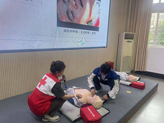 講座過程中,蔡海燕通過理論講解、現(xiàn)場演示和互動(dòng)實(shí)操相結(jié)合的方式,向同學(xué)們詳細(xì)講解了氣道異物梗阻的急救方法(海姆立克急救法)、心肺復(fù)蘇的正確操作流程以及AED(自動(dòng)體外除顫器)的使用步驟。在實(shí)操環(huán)節(jié),同學(xué)們積極踴躍參與,利用人體模型進(jìn)行模擬練習(xí),掌握了急救技能的關(guān)鍵要點(diǎn)。