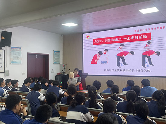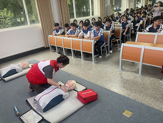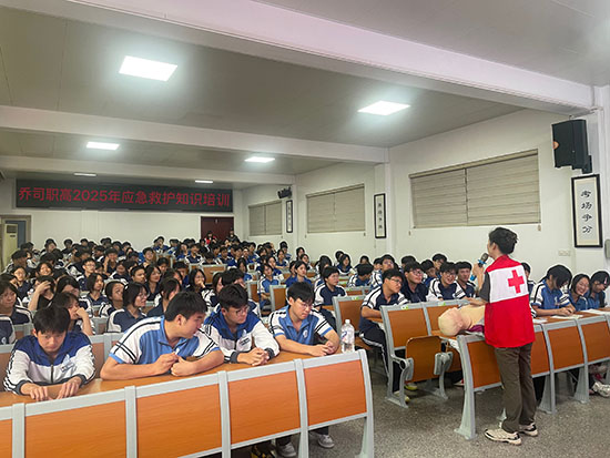 為增強(qiáng)學(xué)生安全意識,普及急救知識,提高應(yīng)對突發(fā)狀況的能力,6月9日下午,杭州市喬司職業(yè)高級中學(xué)開展了一場以“氣道異物梗阻心肺復(fù)蘇(CPR)+AED使用”為主題的應(yīng)急救護(hù)知識講座,浙江省紅十字二級講師、國家應(yīng)急救援員、杭州龍晟應(yīng)急救援服務(wù)中心師資組組長蔡海燕為該校高一、高二年級部分學(xué)生代表進(jìn)行了應(yīng)急救護(hù)常識指導(dǎo)培訓(xùn)。