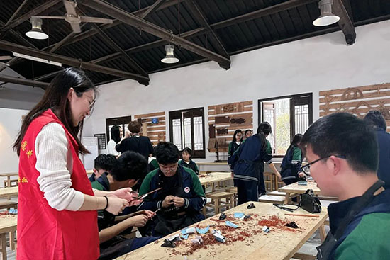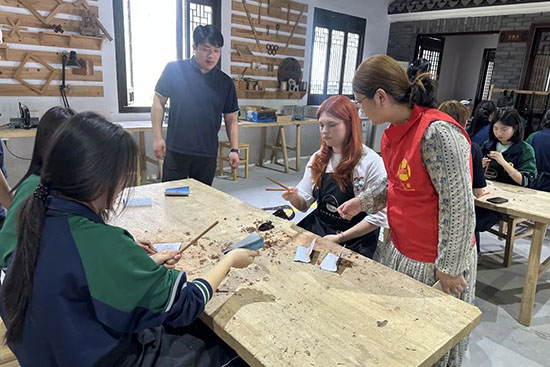 藝馨支部和清馨支部黨員教師聯(lián)合服務國際交流暨多彩課堂研學活動,引導來自南洋職業(yè)技術學院的國際留學生參觀古建園,為他們講解古建筑的歷史背景和文化內(nèi)涵,指導留學生在木作工坊體驗中國傳統(tǒng)木作工藝,分享文化和生活經(jīng)驗,為弘揚中華優(yōu)秀傳統(tǒng)文化、推進國際交流合作辦學貢獻力量。