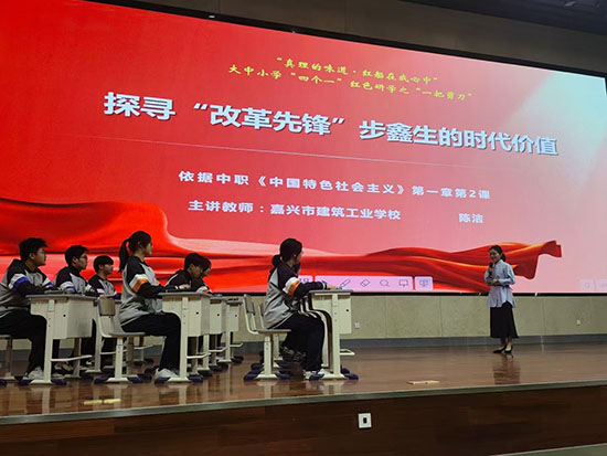 在由學(xué)校黨建共同體合作單位——嘉興職業(yè)技術(shù)學(xué)院馬克思主義學(xué)院組織的“真理的味道”大中小學(xué)思政課一體化實(shí)踐研學(xué)活動(dòng)中,黨員教師陳潔老師受邀參加大中小五個(gè)學(xué)段的教學(xué)展示,以“探尋改革先鋒步鑫生的時(shí)代價(jià)值”為課題,將AI技術(shù)與思政教育深度融合。學(xué)生們通過數(shù)字化手段創(chuàng)作作品,生動(dòng)講述步鑫生的改革創(chuàng)新故事,深刻領(lǐng)悟時(shí)代精神與使命擔(dān)當(dāng)。