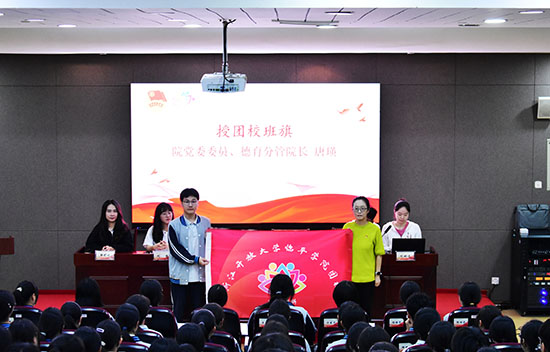 院黨委委員、德育分管院長唐瑛同志向本期團(tuán)校學(xué)員代表——2412藝術(shù)設(shè)計班的溫志鵬同學(xué)授予了本期團(tuán)校班旗?;照屡c旗幟的傳遞,寓意著組織信任的交付和奮進(jìn)力量的凝聚,激勵學(xué)員們在班旗引領(lǐng)下團(tuán)結(jié)協(xié)作、銳意進(jìn)取。