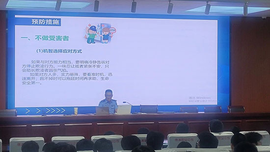 為進一步增強學(xué)生的法治觀念,提高自我保護意識,筑牢校園安全防線,6月11日下午,智能制造系邀請家長導(dǎo)師王警官走進課堂,開展“預(yù)防未成年人犯罪,遠離校園欺凌”主題教育活動,為學(xué)生們帶來了一堂生動而有意義的法治課。