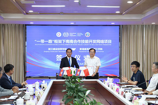 7月30日,“一帶一路”框架下南南合作技能開發(fā)網(wǎng)絡項目暨柬埔寨學員來浙培訓活動在浙江建設技師學院啟動。柬埔寨勞動和職業(yè)培訓部、柬埔寨菩薩省理工學院、國際勞工組織“中國合作計劃”項目組以及浙江省人社廳和浙江建設技師學院代表參加了開班儀式。