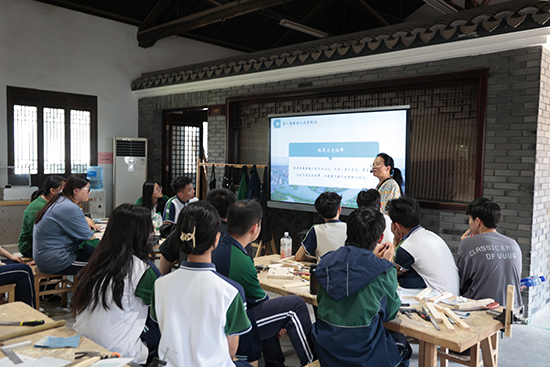 隨后,市政工程專業(yè)田少梅老師在古建木作坊以《橋見歷史?匠心傳承 — 塘匯“橋的故事”》為題,為同學(xué)們梳理塘匯古橋文脈。她從塘匯以第一座橋的“三次變形記”講起,融入初入職場的“尋路記”,分享初到塘匯的迷茫、尋路困難及成功感悟,讓歷史建筑與個(gè)人經(jīng)歷相映成趣。介紹永政橋時(shí),她講述其促進(jìn)塘南塘北經(jīng)濟(jì)融合、帶動區(qū)域繁榮、推動文化交流與情感聯(lián)結(jié)的作用。最后以日新月異的路橋發(fā)展為引,通過觀看現(xiàn)代橋梁視頻,串聯(lián)古今橋梁發(fā)展脈絡(luò)。