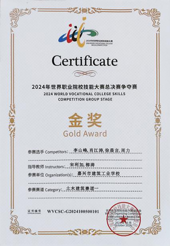 基地始終對標世界職業(yè)院校技能大賽,用實力書寫“傳奇”!3位教師參加嘉興市職工技能比武獲第一名,并被授予嘉興市“技術(shù)能手”榮譽稱號。近三年,20余名學生在省級以上裝配式或智能建造賽事中斬獲佳績,2024年更摘得世界職業(yè)院校技能大賽爭奪賽裝配式賽項金獎!“虛擬仿真+實體操作”的雙軌訓練模式堪稱“制勝法寶”,配套理論競賽平臺和題庫,助力學生實現(xiàn)“崗課賽證”全面融通。