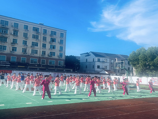 “今天我們齊聚一堂,共同迎來(lái)8月8日的全國(guó)第十七個(gè)‘全民健身日’和諸暨市第十八屆全民健身節(jié)。全民健身、健康你我。為積極倡導(dǎo)健康向上的生活方式,提高我們的身體素質(zhì)。今天我們組織大家在這里舉行健步走、廣場(chǎng)舞、太極拳、兜球和柔力球的全民健身日活動(dòng),再一次充分展示出體育和健身的蓬勃激情與無(wú)窮魅力……”諸暨市楓橋鎮(zhèn)老年體協(xié)主席葛世良在楓橋鎮(zhèn)老年學(xué)校田徑場(chǎng)上作動(dòng)員講話。