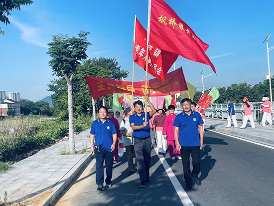 楓橋鎮(zhèn)老年體協(xié)秘書(shū)長(zhǎng)王德良宣布活動(dòng)流程。鎮(zhèn)內(nèi)29個(gè)村(社區(qū))的260多名成員兩路縱隊(duì)沿著楓店線到楓山線接口健步走,身著“全民優(yōu)生活”贊助健身服的成員在“我運(yùn)動(dòng) 我健康 我快樂(lè)”的橫幅指領(lǐng)下精神抖擻地行進(jìn)在人行道上,路人紛紛駐足觀望,極大地增強(qiáng)了人們“全民健身”的意識(shí)。