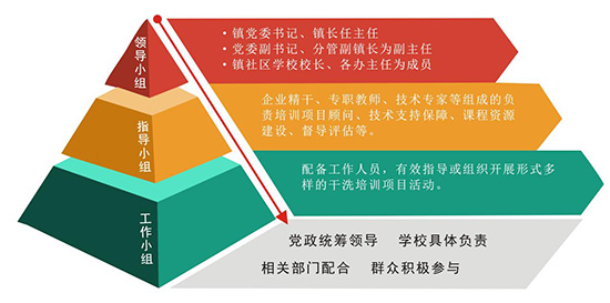 建立“領導小組+指導小組+工作小組”的工作體系和部門協(xié)同合作、數(shù)據(jù)共享機制。成立由鎮(zhèn)黨委書記、鎮(zhèn)長任主任,黨委副書記、分管副鎮(zhèn)長為副主任,鎮(zhèn)社區(qū)學校校長、各辦主任為成員的共富課堂干洗培訓工作領導小組。領導小組下設由企業(yè)精干、專職教師、技術專家等組成的負責培訓項目顧問、技術支持保障、課程資源建設、督導評估等指導小組。指導小組配備工作人員,有效指導或組織開展形式多樣的干洗培訓項目活動。形成“黨政統(tǒng)籌領導、學校具體負責、相關部門配合、群眾積極參與”的管理體制和運行機制。