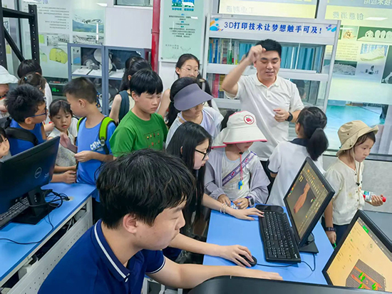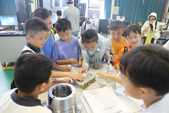 隨后,小朋友們又在學(xué)校專業(yè)老師的帶領(lǐng)下,依次參觀了學(xué)校精密測(cè)量中心、校企共建柔性制造生產(chǎn)線、中德(認(rèn)證)德馬吉精密制造中心、工業(yè)機(jī)器人應(yīng)用中心、榕器共享智造平臺(tái)工業(yè)設(shè)計(jì)中心、增材制造中心、產(chǎn)學(xué)研智造基地等專業(yè)實(shí)訓(xùn)場(chǎng)所。