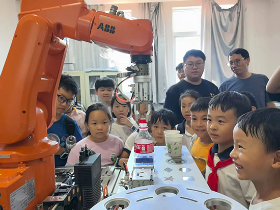 小朋友們這里瞅瞅,那里摸摸,不時(shí)用電話手表、紙筆等記錄所見所聞。“精美的零部件,原來是由一個(gè)大鐵塊切削出來的”“一只笨拙的機(jī)械臂居然能打開瓶蓋,倒可樂給我喝”“一捆塑料絲,居然能打印出各種各樣精美的器物,還能修復(fù)文物”……孩子們的好奇心爆棚,時(shí)不時(shí)向身邊的老師和學(xué)校的大哥哥大姐姐們提問,對(duì)他們來說,一切都是未曾見過的,原來“技師學(xué)院”如此有趣。