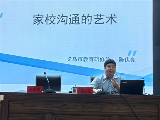 義烏市委講師團成員,金華教育學院兼職教授,義烏市教育研修院高中歷史教研員陳伏亮老師為實驗中學共同體、龍山中學共同體作《家校溝通的藝術》專題講座。陳老師以班級微信群中家長回復的日常場景為切入點,諸多案例引發(fā)教師共鳴,圍繞 “家校溝通”的現(xiàn)狀分析、四大技巧、實用方案、注意事項四大核心板塊展開深入講解。”從理論方法的細致拆解到實際案例的生動剖析,層層深入,為大家鋪就了連接家庭與校園的通途。