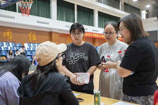為保障新生順利開啟新旅程,學(xué)校在報(bào)到現(xiàn)場精心設(shè)置了醫(yī)務(wù)處、填報(bào)志愿處、量身高服務(wù)處、發(fā)放暑假作業(yè)處多個(gè)功能服務(wù)區(qū)。